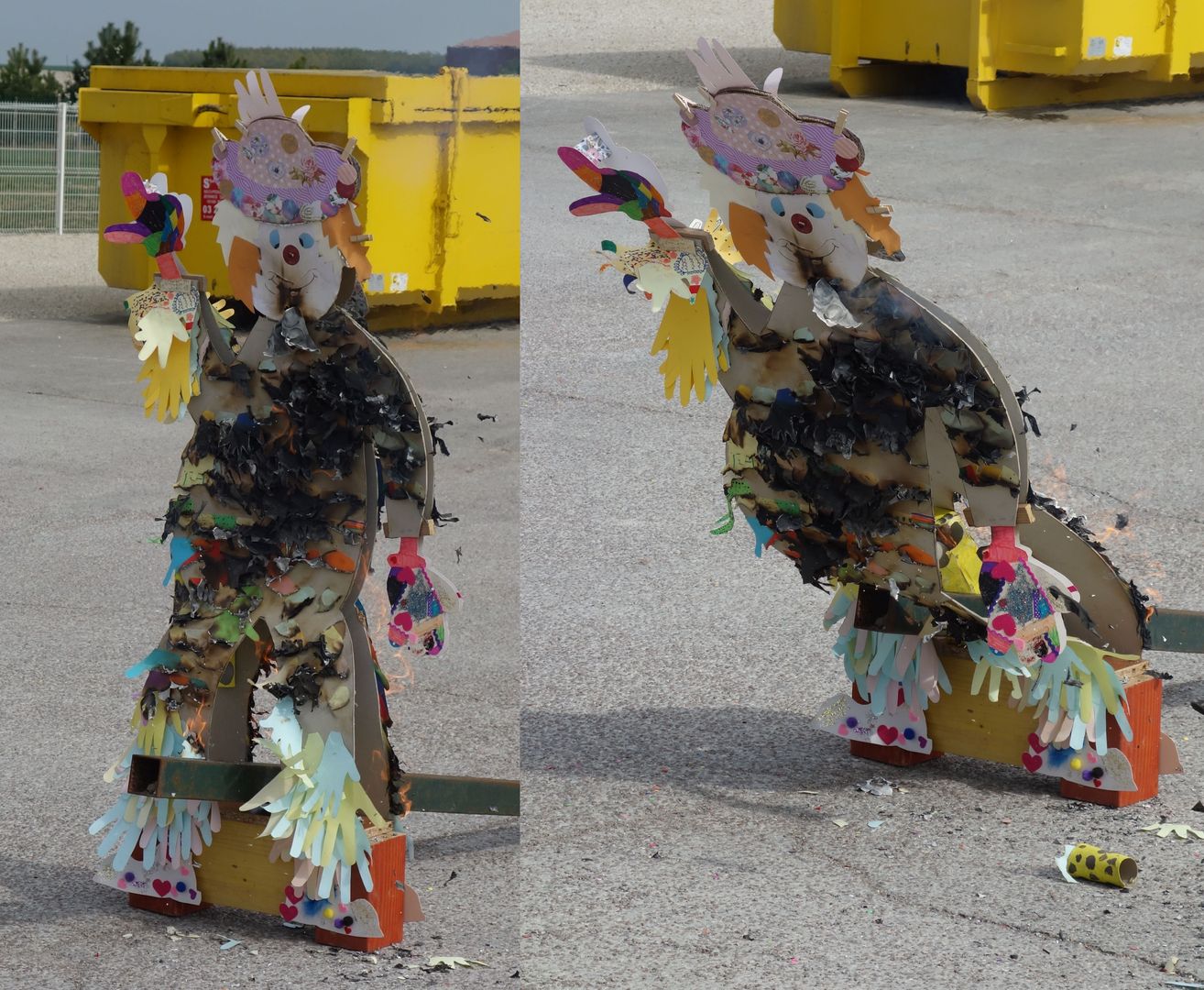 L’assemblée a ensuite pris place autour d’un bûcher pour assister à la sentence de M. Carnaval, qui, sous le regard des enfants ébahis et dans des cris de joie, n’a pu échapper à son triste sort.