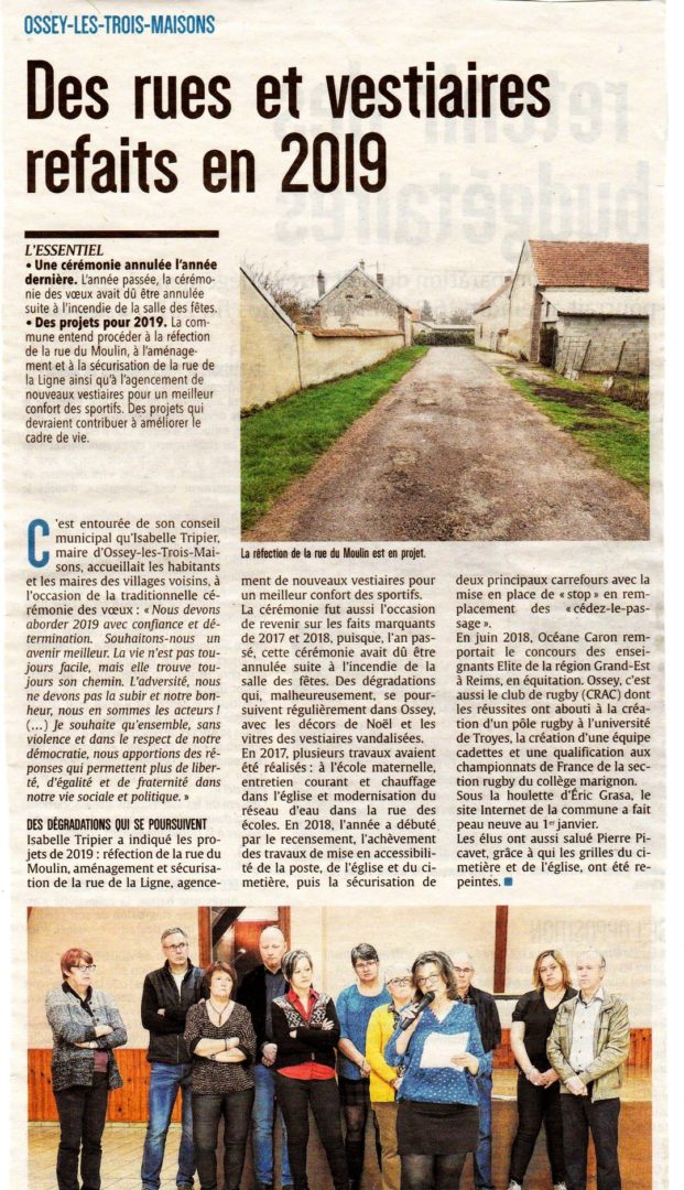 Comme chaque année lors de la cérémonie des voeux, Madame le Maire fait l’inventaire des travaux de l’année écoulée, cette fois se sont deux années qui ont été évoquées; l’année 2017 a vu la réalisation des travaux à l’école maternelle, la modernisation du réseau d’eau dans la rue des écoles et le remplacement du chauffage de l’église (plus quelques travaux d’entretiens courants).